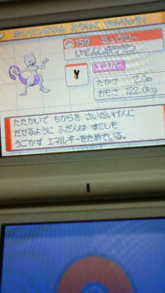 いとこ(中2)にポケモン 四天王(レベルアップ後)を クリアしてもらいました♪ そしてサンダーも捕まえてもらった(^-^) ありがとう! で、ミュウツーゲットだぜ!(やっと 何もかも遅れてる あっけなかったミュウツー! 2回でゲット!(^O^)/ ひゃほい